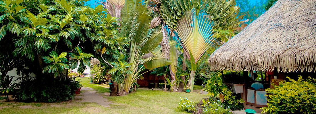 Nos bungalows jardin sont implantés dans un jardin botanique contenant divers arbres fruitiers, fleurs et arbustes de Polynésie.